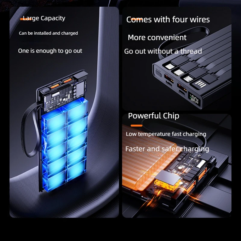 Comes with four wires for greater convenience: Powerful chip, low-temperature fast charging, faster and safer