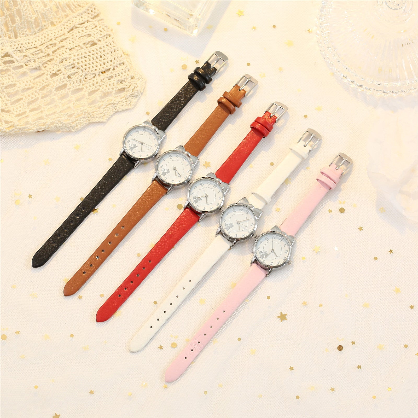Korean Latest Design Fashion Casual Cat White Ladies Trendy Quartz Watch
