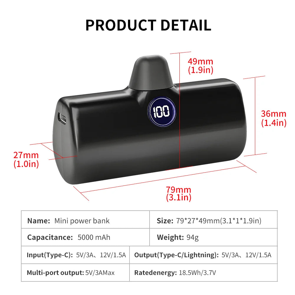 This power bank is true 5000mAh, best portable charging source for IPhone/Type-C phone battery backup, normally support around 0.8~1.2 charges for your phone.