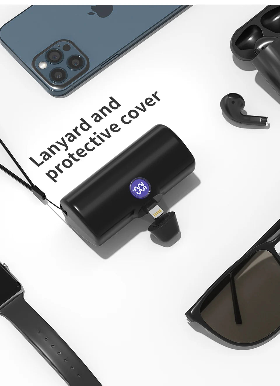 The compact size makes it easy to carry in a pocket. The attached lifting rope allows the power bank to be hung on the bag.