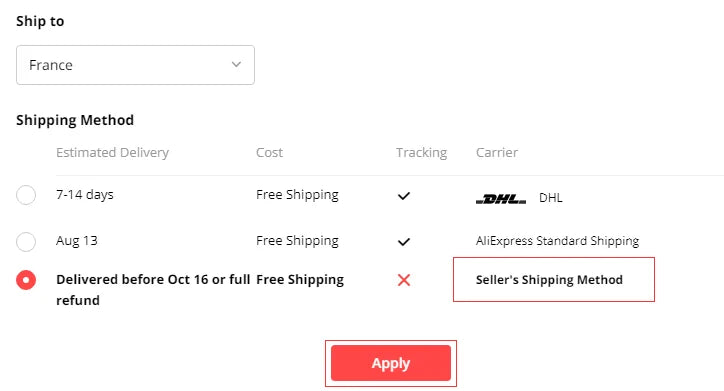 Send from China to EU/RU/UK by DPD or DHL, TAX Free, must choose seller's shipping method.