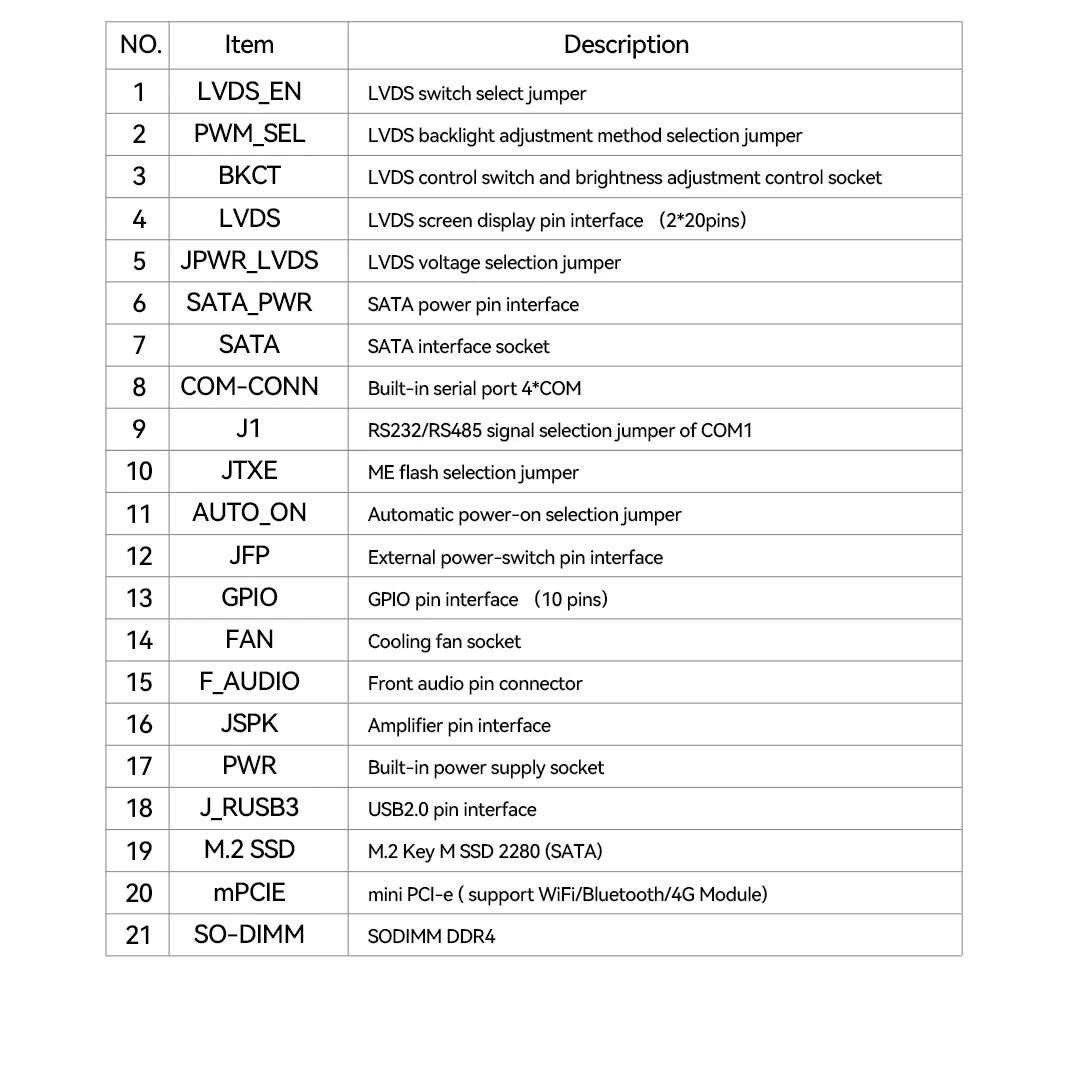 (4) Support mini PCIE to expand WiFi/Buletooth/4G LTE module